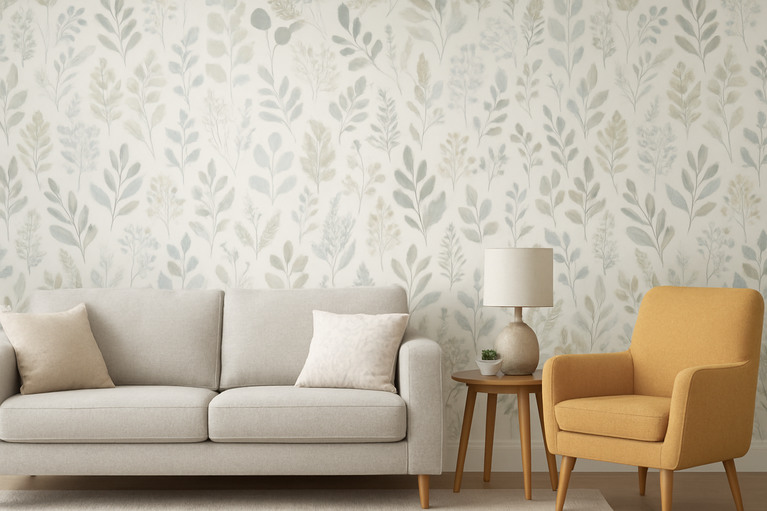 - Living Room: Choose bold patterns or textured wallpaper to create a feature wall.